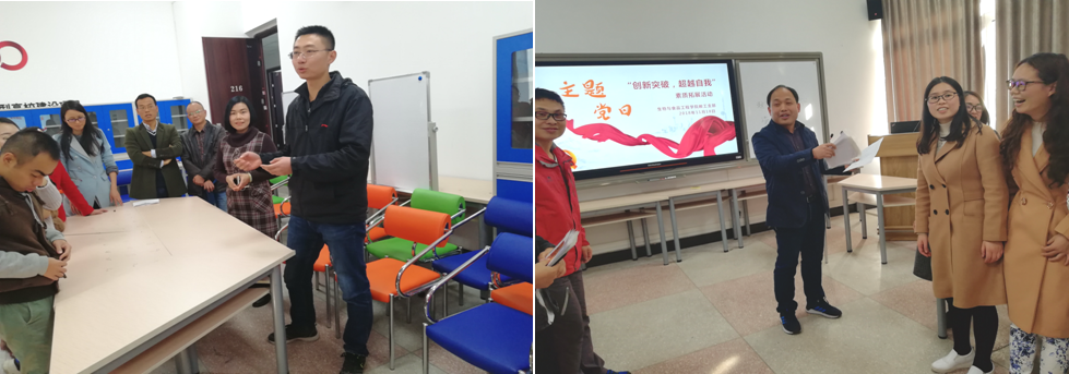 活动中,老师们团结协作,不断尝试新的办法,经过6轮的激烈讨论与挑战,最终两队成员分别以37秒和48秒的成绩完成挑战任务(图2)。最后,两队参赛成员分享了完成此次活动的经验(图3),由主持人总结各队在此活动中的优缺点。