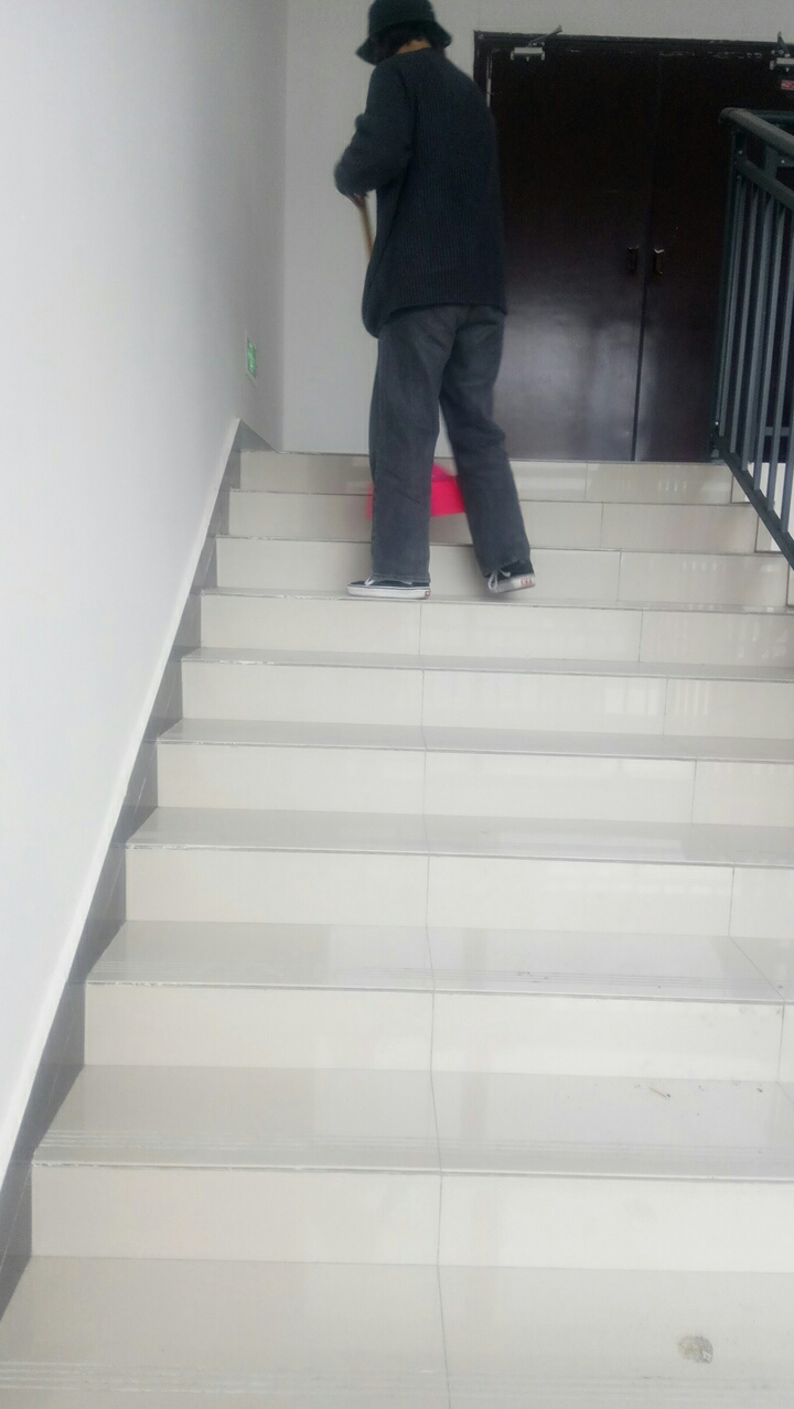 9日上午,志愿者在每层楼的楼道,打扫了同学们提垃圾下楼时不慎掉落在走廊和楼梯上的垃圾,从一楼到六楼,他们没有休息,没有抱怨,自始至终保持一种积极昂扬的态度,他们弯腰清扫的样子写满了认真和努力,最终她们圆满地完成了本次服务活动。各位志愿者以诚挚的态度对待着本次活动,通过本次活动也深深的感受到了清洁阿姨工作的辛苦。活动过后,阿姨对志愿者们表示了感谢,志愿者们也交流了自己的心得体会。