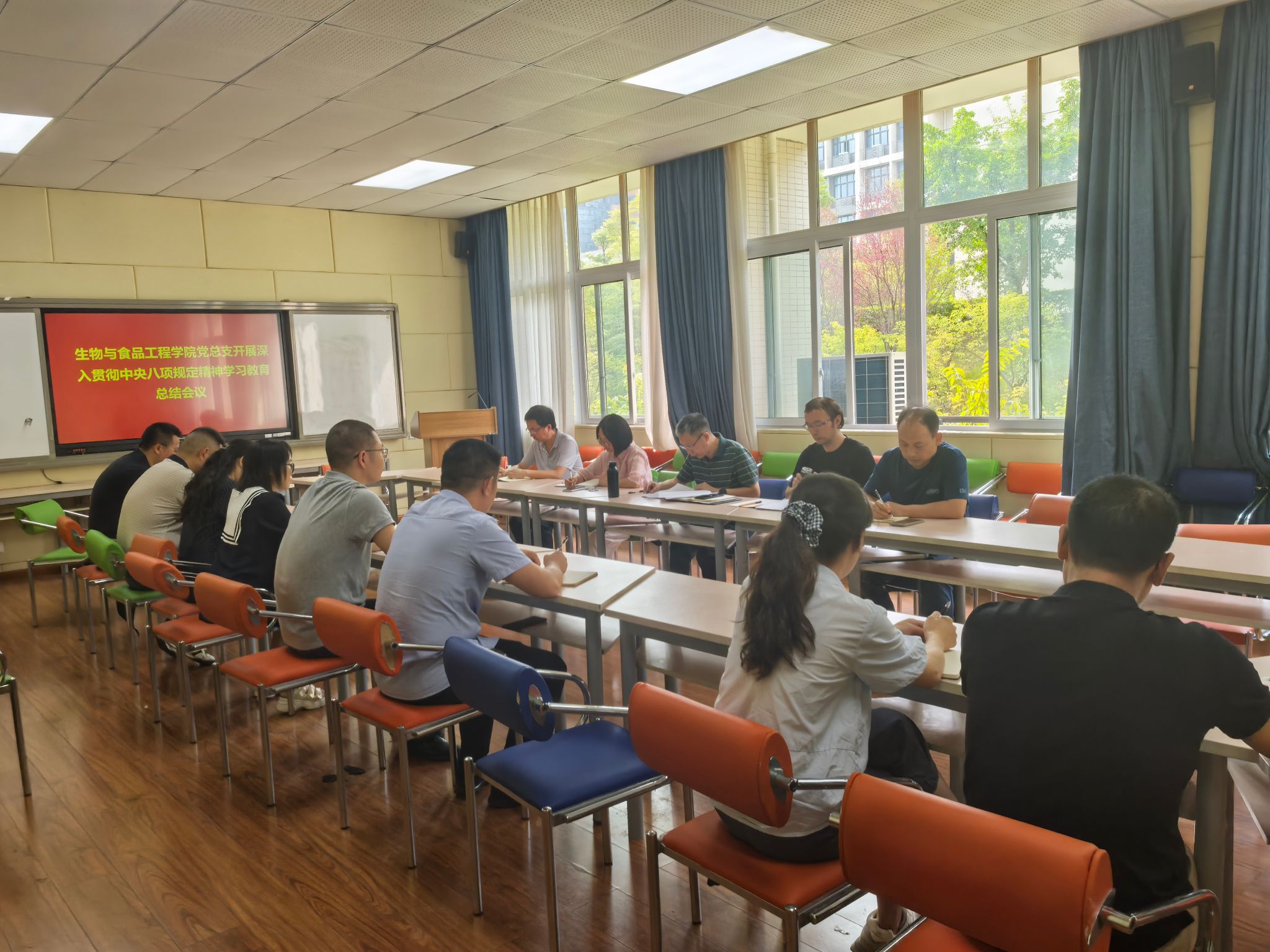 918日上午,生物与食品工程公司党总支在慎思楼2216会议室,召开深入贯彻中央八项规定精神学习教育总结会议。党总支书记肖国生主持会议,公司领导班子成员、党总支委员、专职组织员、各党支部书记、各系室负责人参加会议。