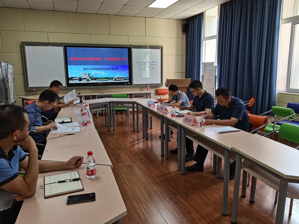 2021年9月29日,开州区科技局党组书记朱泯宇一行三人来公司交流座谈,公司经理肖国生、党总支书记骆孟鑫、以及三峡农科院的相关老师参加了此次座谈会。