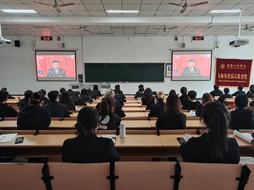 全体师生聆听了习近平总书记所作的党的二十大报告,大家心潮澎湃、热血沸腾,不时报以热烈的掌声。党总支书记骆孟鑫表示:“聆听了习近平总书记的报告,深受鼓舞,倍感振奋。报告提出,实施科教兴国战略,强化现代化建设人才支撑。作为一名高校工作者,奋战在加快建设教育强国、科技强国、人才强国主战场,深感责任重大,使命光荣。下一步,我们将迅速在全院上下掀起学习党的二十大精神热潮,围绕办好人民满意的教育,全面贯彻党的教育方针,落实立德树人根本任务,创新人才培养模式,着力提升人才培养质量,为党育人、为国育才。在培养德智体美劳全面发展的社会主义建设者和接班人中再立新功。”