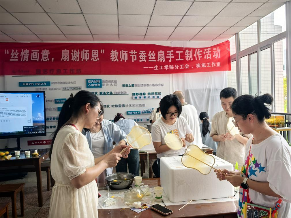 公司举办“蚕丝扇手工制作”教师节庆祝活动