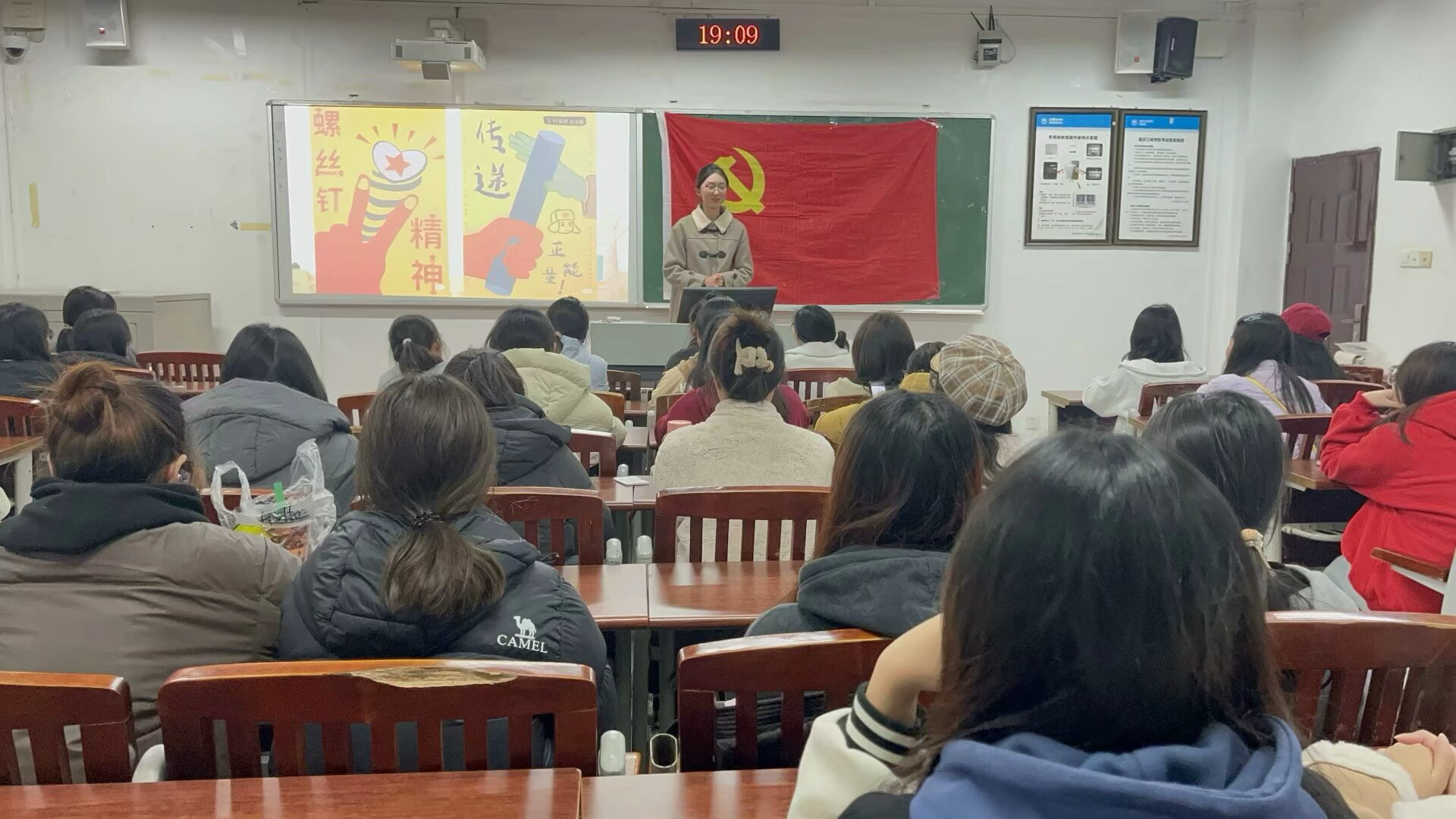 活动伊始,主讲人李沛霖同学对雷锋的生平事迹进行了详细介绍,从雷锋苦难的童年到他在工作和生活中无私奉献的点点滴滴,让同学们真切感受到雷锋平凡而伟大的一生。在解读雷锋精神时,重点阐述了“螺丝钉精神”,强调无论身处什么岗位,都应坚守职责、精益求精。为了让雷锋精神更加贴近当代生活,还特别介绍了当代雷锋郭明义的事迹。郭明义几十年如一日,坚持献血、捐款,帮扶贫困家庭和困难群众,在平凡的岗位上做出了不平凡的业绩。活动最后,同学们纷纷表示要以雷锋和郭明义为榜样,从身边小事做起,用实际行动传递爱心与温暖。