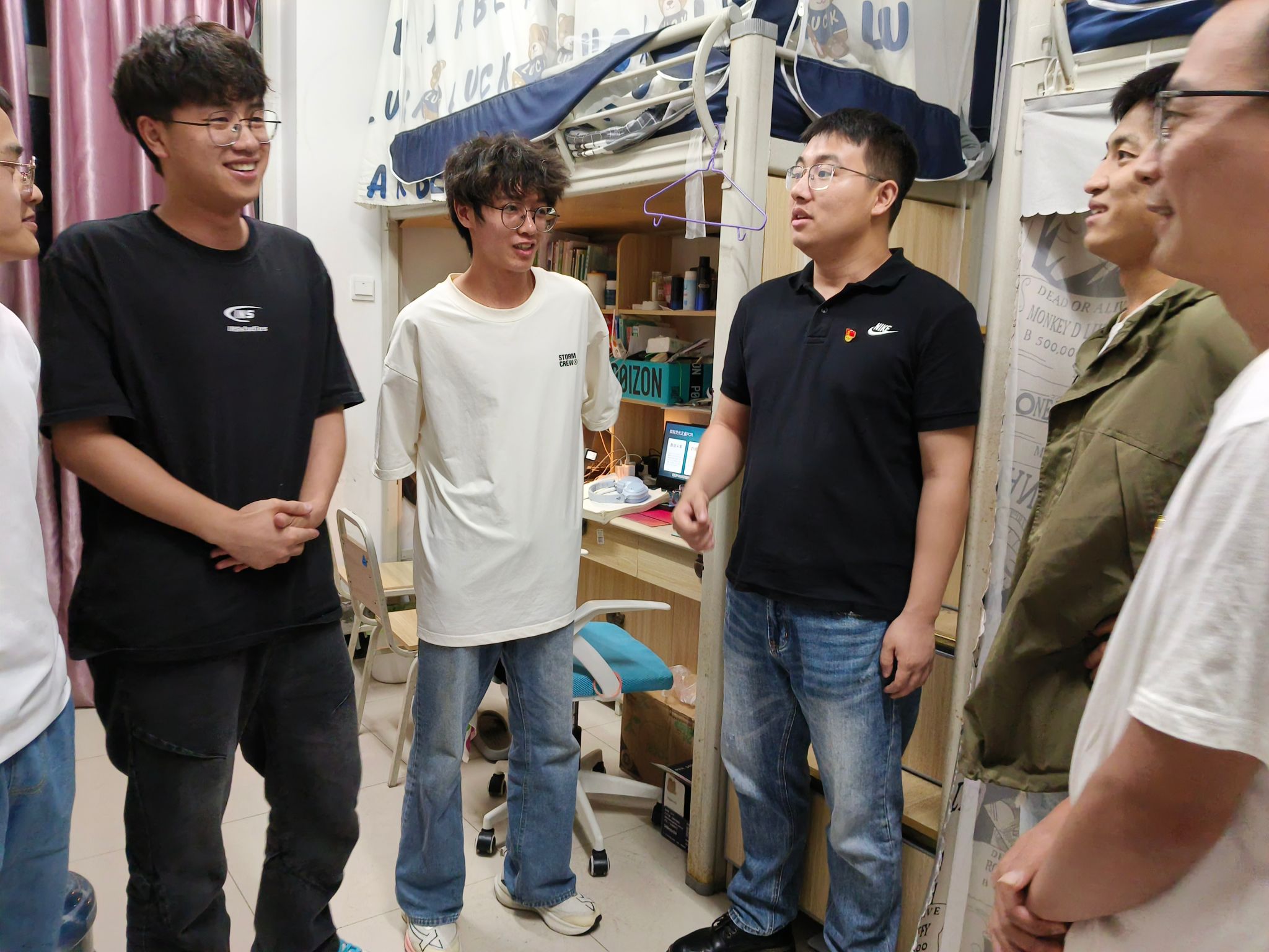 本次进寝的员工党员有吴云露(女)、原赫遥(女)、宋行(男)、徐国奥(男)四位同志,分别来自公司员工第一党支部和员工第二党支部。在初心工作站工作人员的带领下,四名同志进入不同的寝室,向同学们宣传党的理论知识和入党的基本流程,引导同学们积极向党组织靠拢。活动中,同学们踊跃提问,主要集中在考公考研、就业和期末备考等方面。员工党员结合自身经历对考公考研和期末复习规划进行了详细的讲解,尤其是对跨专业考研给予了充分建议。员工党员表示在大学期间要勇于尝试,敢于面对失败,才能在时代浪潮中行稳致远。