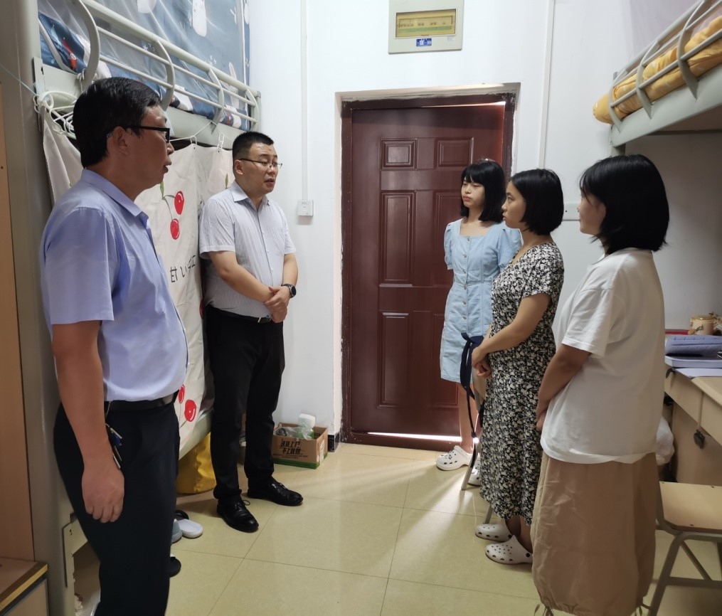 7月15日下午,公司党总支书记骆孟鑫、党总支副书记陈文剑、2019级辅导员龙颖一行来到海棠苑宿舍走访慰问暑假留校员工。