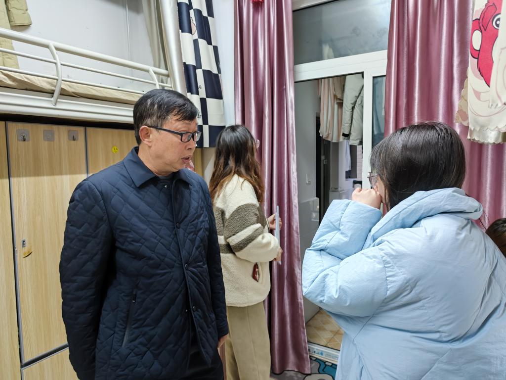 走访过程中,陈书记、闫主任同各年级辅导员亲切问候同学们,仔细检查各宿舍是否有违规电器、乱拉乱接等安全隐患,针对检查中发现的现象叮嘱同学们及时整改,嘱咐同学们要提高安全意识,注意宿舍用电安全,遵守宿舍管理规定,严禁在宿舍使用违规电器,禁止私拉乱接电线,电器使用后及时断开电源,养成“人走灯灭,人走电关,人走锁门”的良好生活行为习惯。