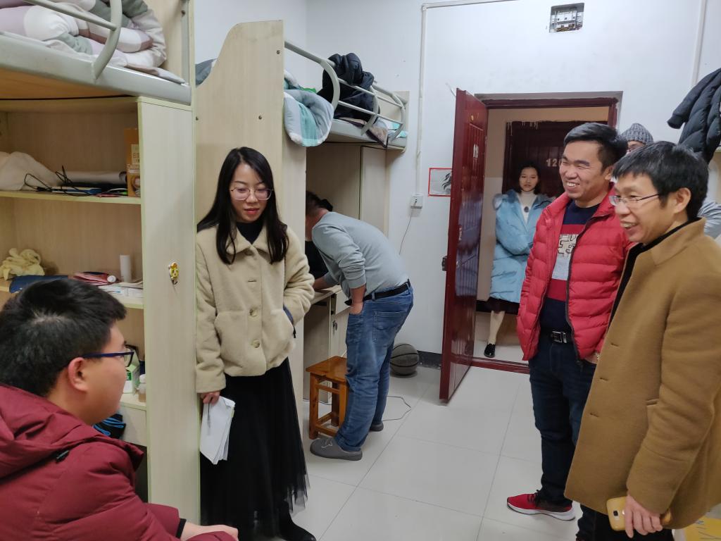 11月19日21:30,公司肖国生经理深入大一寝室,为大一新生送去了关怀和慰问。随行的还有实验室主任唐华丽、辅导员蒋园园以及员工会主席许嫒香、副主席(兼团联主席)陈珍瑶。