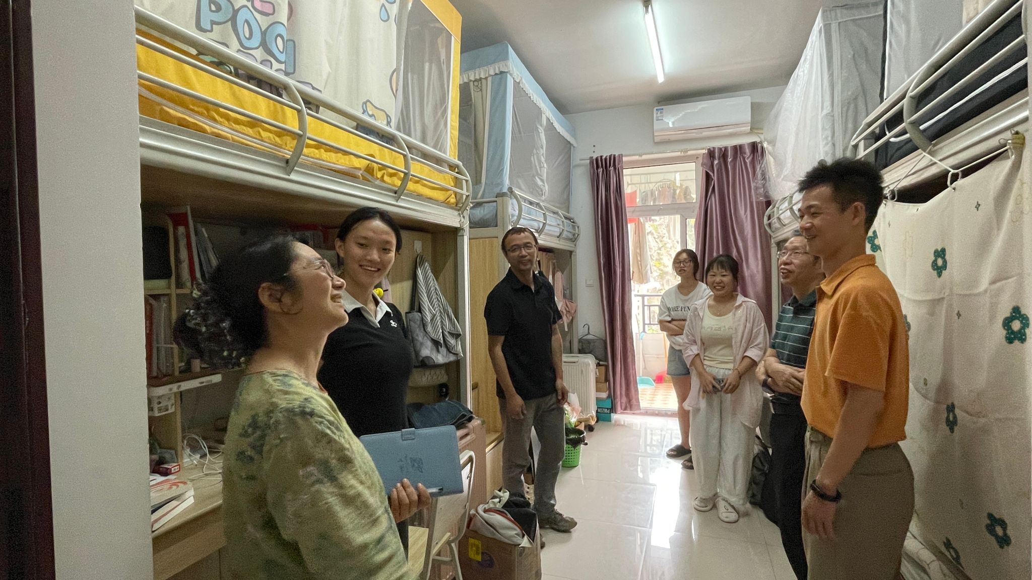 9月7日,为进一步了解员工需求、加强师生交流,公司领导班子带队开展新学期员工寝室走访活动。党总支书记肖国生、经理汪开拓、党总支副书记黎涵及全体辅导员深入员工宿舍,倾听员工心声,传递公司关怀,为同学们送去温暖与指导。