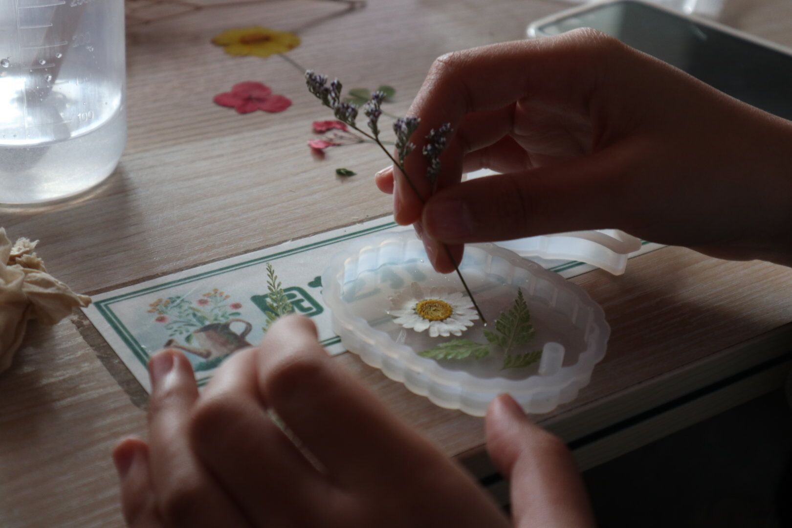 活动伊始,工作人员介绍了具体的制作流程,强调了制作过程中的注意事项。制作开始后,参与者全身心投入,充分发挥自己的动手能力,利用提供的植物材料制作出各式各样的滴胶作品。参与者在完成作品制作后,做好标记,盖上防尘盖,静置三天,即可脱模。活动过程中工作人员恪尽职守,展现了良好的服务态度。