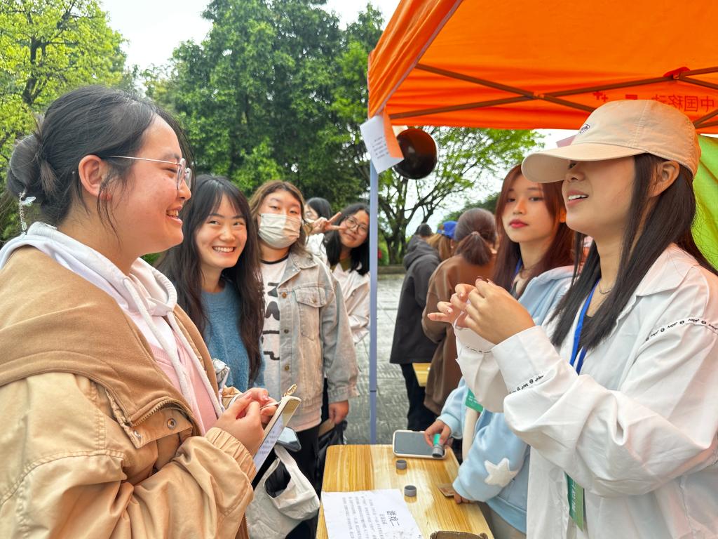 活动伊始,同学们领取闯关卡进入游戏环节。现场设置了多个趣味盎然的闯关游戏,包括健康饮食搭配知识问答、正话反说、绕口令等智力挑战,以及托球跑、逛三园等体力竞技。活动现场,同学们热情高涨,积极互动,展现了三院学子的风采。游戏结束之后,参与者们凭借所获通关章的数量参与青团DIY手工制作,领取精美小礼品。
