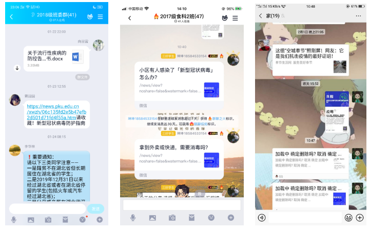 (4)辅导员、员工干部每天以群分享、朋友圈分享等多形式向家人、朋友、同学宣传疫情实时信息和防控信息等至少1次,让身边人高度重视疫情,为打赢这场防疫站贡献微薄力量。