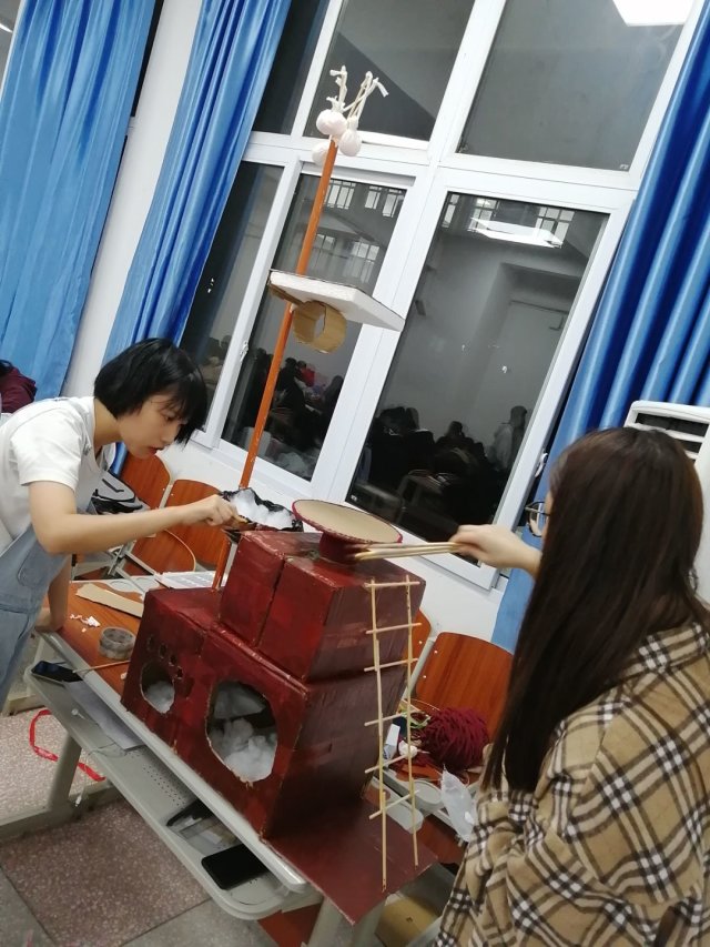 各组选手提前90分钟到达现场制作参赛作品。19:30,活动正式开始,在播放3个DIY创意小视频的同时,各组也在紧张的作品制作中。随后,各组选手从作品所用材料、如何加以改造以及制作的方式、理念、意义等方面进行详细地讲解。除此之外,环保知识抢答环节融入其中,增长同学们对环保认识的同时,倡导并宣传环境保护的重要性,让同学们意识到新时代低碳、环保、绿色发展的重要意义。