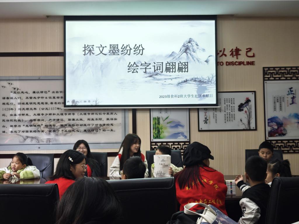 为了向小朋友们普及中国古诗词字画知识, 11月17日上午8:30-11:00,公司青年志愿者协会同23级食品科学与工程2班一起,于陈家坝社区开展志愿服务活动,志愿者们以“探文墨纷纷,绘字词翩翩”为主题,向小朋友们分享了中国古诗词字画的基本知识,帮助他们进一步了解中国传统文化。