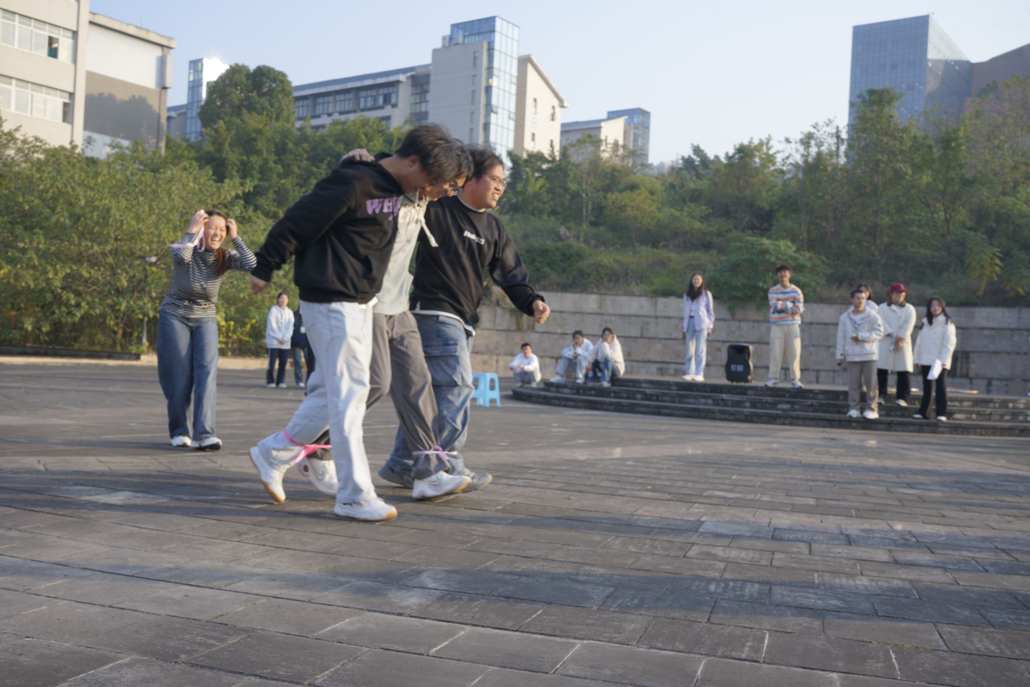 本次运动会以独特的趣味项目为纽带,旨在提升团队协作与沟通能力,于欢声笑语中展现青春风采,为冬日注入青春活力与温暖力量。增温运动会现场,“抢椅子”比赛气氛热烈,紧张刺激的场面引得其他队员阵阵喝彩;“两人三足”项目则是考验团队协作;“共享大脑”环节更是有趣,参与者们快速讨论、踊跃作答;最后的“寻寻觅觅找宝藏”更是热情不减,动力十足。