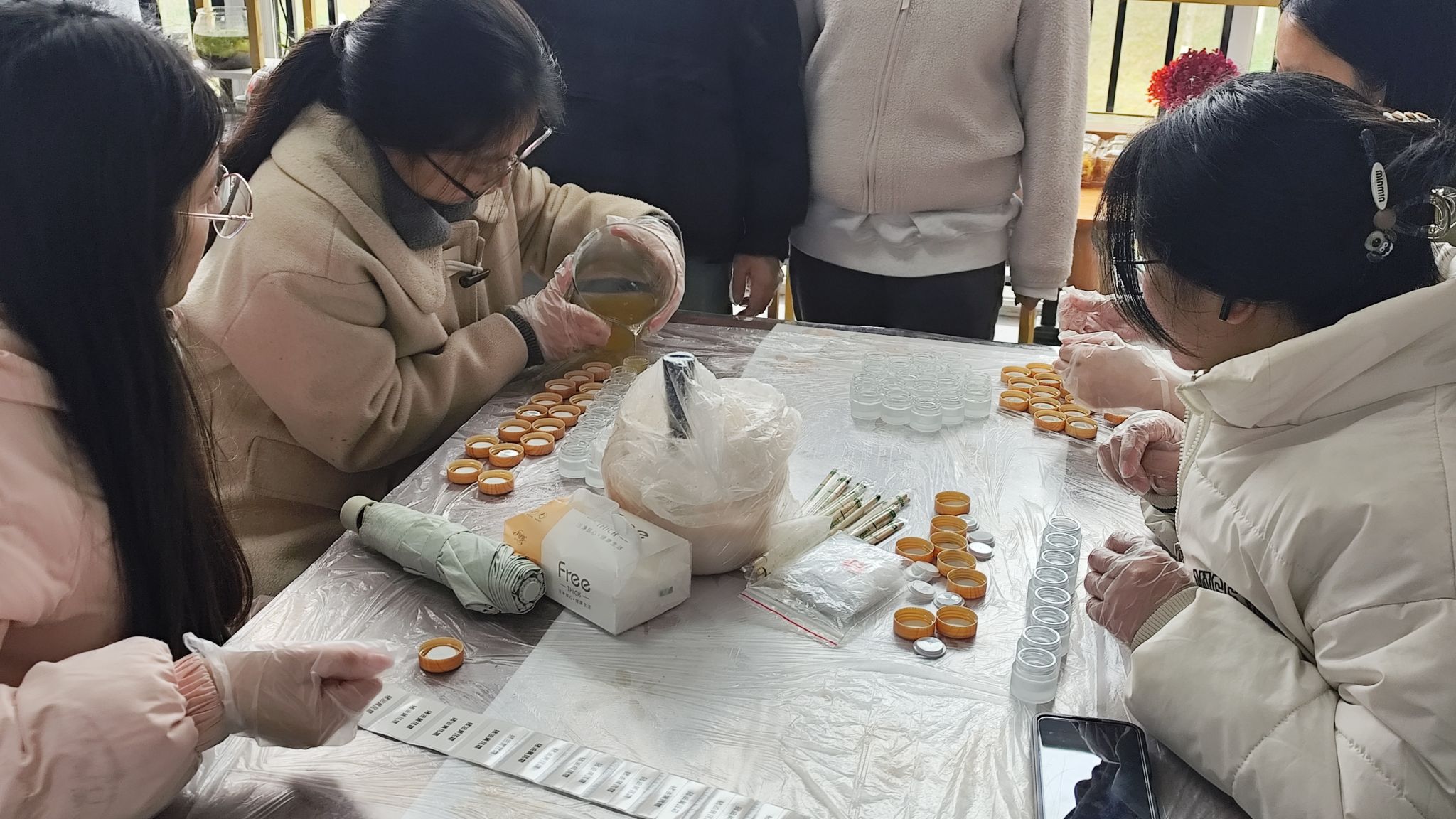 活动开场,会长张铃详细讲解唇膏、艾条、猪油黄芪霜的功效和制作方法,为后续实操做好准备。会员们随即分组,在工作人员协助下正式开启制作之旅。称取原料、加热搅拌、倒入模具,每一步都凝聚着专注与期待,亲手将简单材料变成实用好物。活动尾声的抽奖环节,为此次植愈之行增添惊喜。幸运会员收获亲手制作或他人佳作,喜悦之情溢于言表。