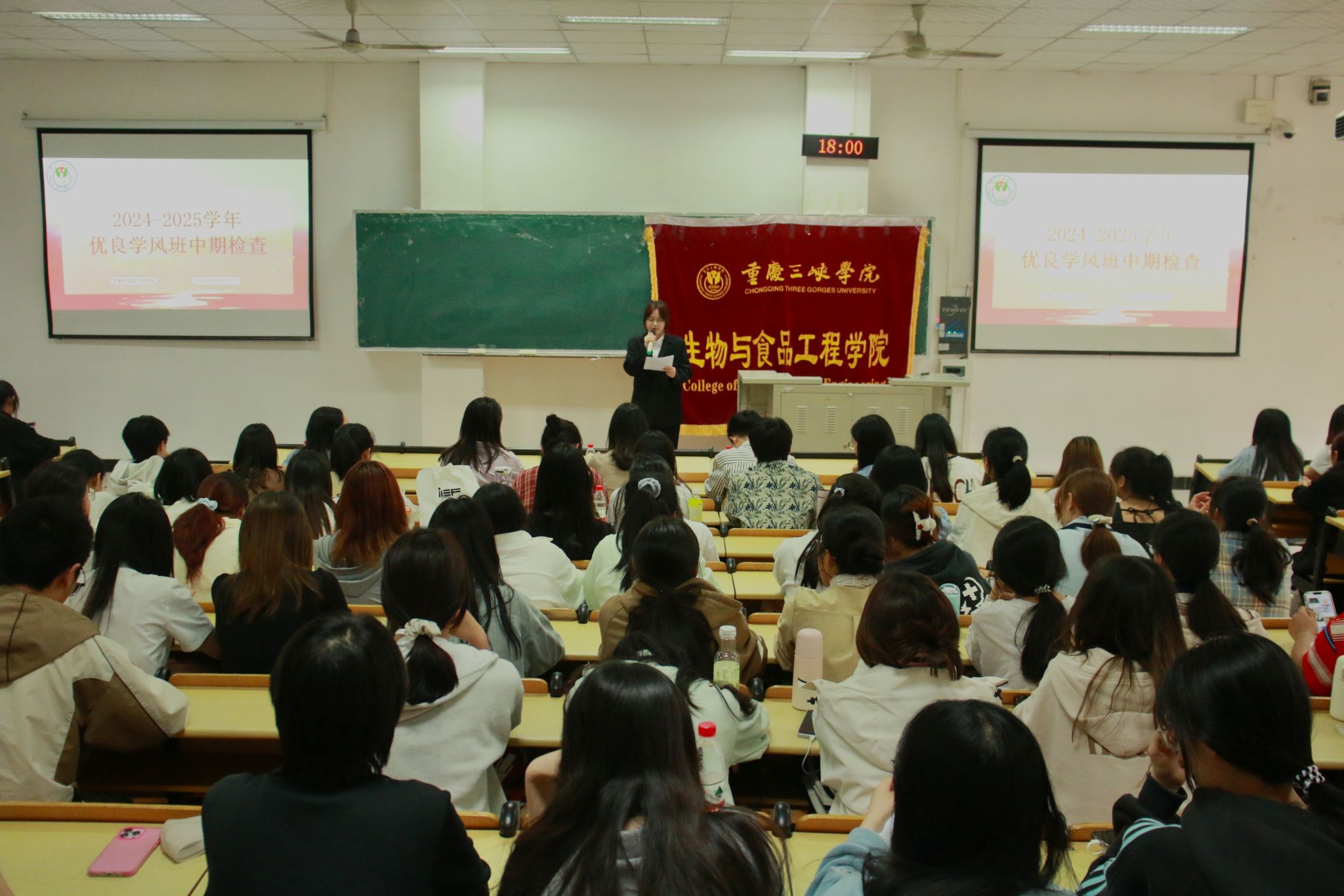 为推动公司的优良学风建设,营造比学赶超的浓厚学习氛围,2025年4月27日18:00,公司于明辨楼2栋206开展“优良学风班”中期检查汇报展示会。此次活动由辅导员许美琳、范磊、龚莉、龙颖、熊小飞担任评委。汇报班级为2023级和2024级全年级,汇报人及观众共计160余人。