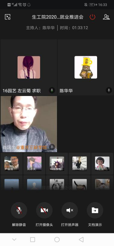 3月31日15:00-16:30,公司通过视频交流方式召开2020届毕业生就业推进线上会议。出席本次会议的有经理肖国生,副经理周浓,2020届全体毕业生就业指导老师及2020届全体未就业员工。本次会议旨在通报就业形势,引导同学们端正就业态度,转变就业观念,并明确自身实际情况,促进公司毕业生尽早就业。